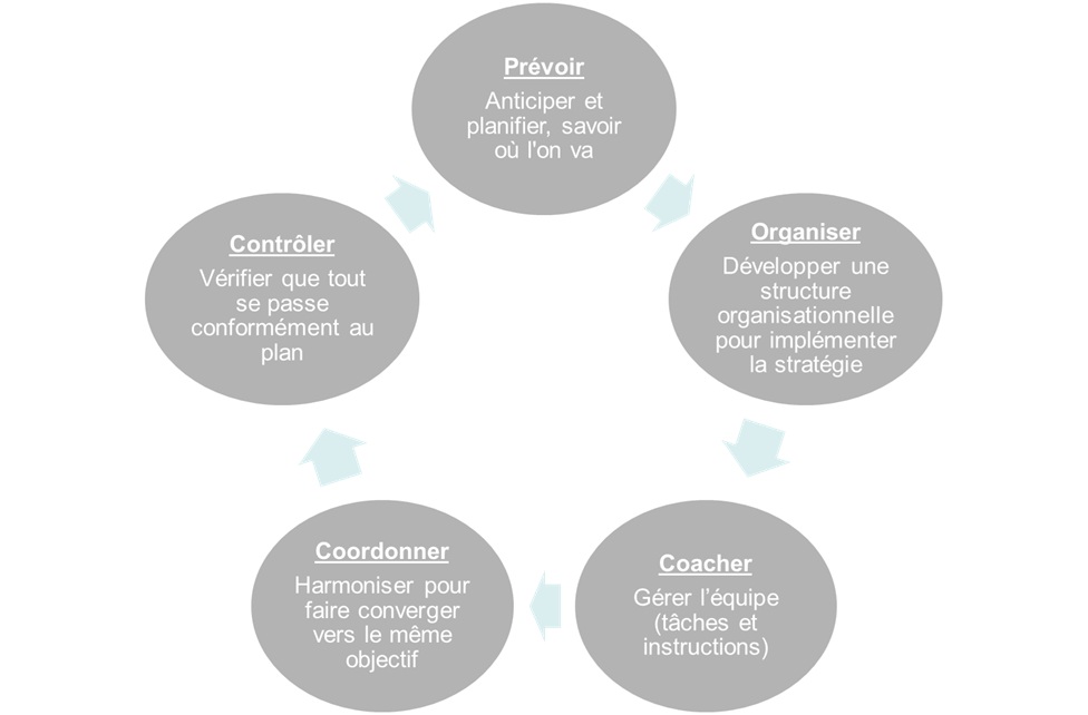 Ce trimestre, focus sur les compétences managériales à travers le cycle POCCC ci-dessous, imaginé par Henri Fayol (1841–1925), industriel français et précurseur du management moderne. Il a identifié 5 fonctions clés pour garantir un management efficace : Prévoir, Organiser, Coordonner, Commander et Contrôler.